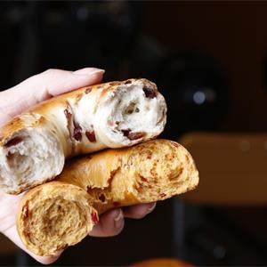 配料表: 小麦面粉,饮用水,蔓越莓干,白砂糖,果葡糖浆,全蛋液,黄油,奶粉,食用盐,谷朊粉,酵母,复配面包防腐剂(单硬脂酸甘油酯,脱氢乙酸)。